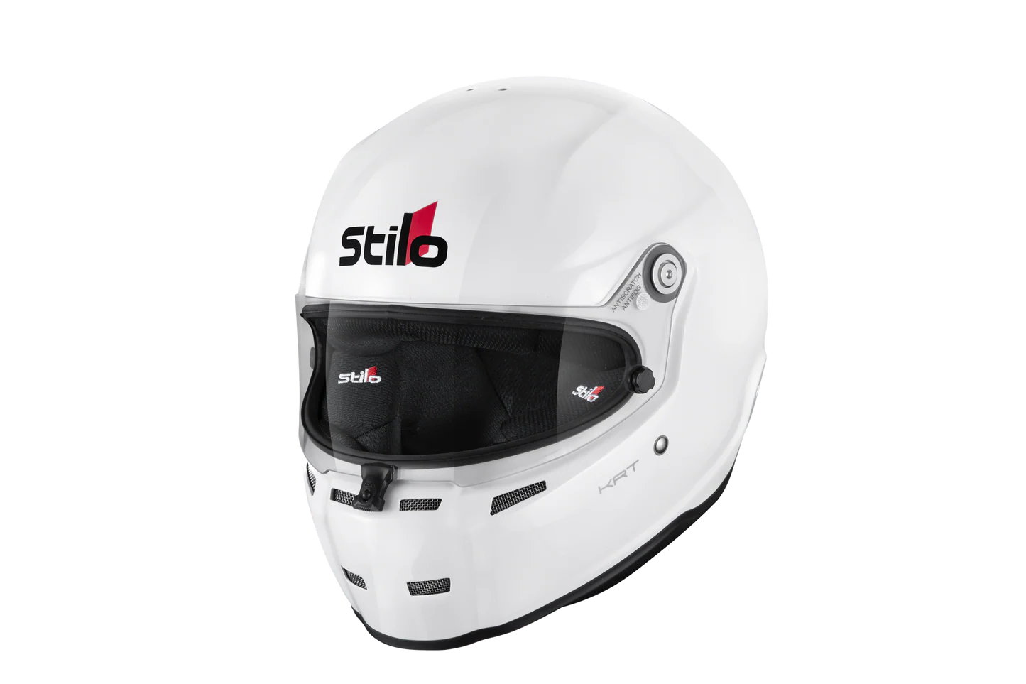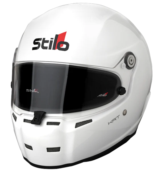 The Stilo ST5 KRT (Kart) Helmet turn heads with style that closely resembles the top of the range ST5 Zero helmet used by many professional racing athletes worldwide. The ST5 Kart is manufactured in a lightweight and very strong composite material and is currently available in white. As with every Stilo helmet, the focus is on safety, comfort and function. The ST5 Kart helmet's interior has an excellent fit and comfort level due to its dual density interior foam lining. From the first use, karters will truly appreciate the level of comfort it offers. The ST5 Kart's symmetrical visor offers excellent vision and an effortless central visor locking system that karters will appreciate. The centrally located locking system has dual opening positions allowing adjustment for the visor to be slightly open for extra airflow as preferred by some karters in damp conditions or left completely sealed, but more importantly in both of these positions the visor is locked and will never fly open. The Stilo ST5 Kart Helmet arrives with a 3mm thick FIA F1 standard visor - adding a dramatic improvement in safety. Offered in a large range of different finishes and tints, including colored iridium options that have been added for a totally bespoke finish. In addition, a double glazed option is available for racing in wet and cold conditions to prevent misting up. We offer a full range of spoilers for any aerodynamic adjustment that maybe needed, but also giving the helmet a great look.